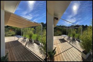 Cependant il existe d’autre solutions pour exploiter votre terrasse, les voiles d’ombrage, les pergolas avec toile ou bioclimatiques, les stores, les abris double pentes ou les parasols